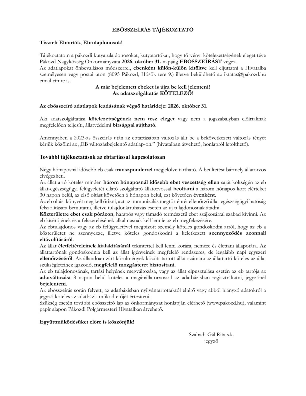 Tájékoztatom a Tisztelt lakosságot, hogy a Pákozdi Polgármesteri Hivatalban 2026. január 10 napján (szombaton) az ügyfélfogadás szünetel.