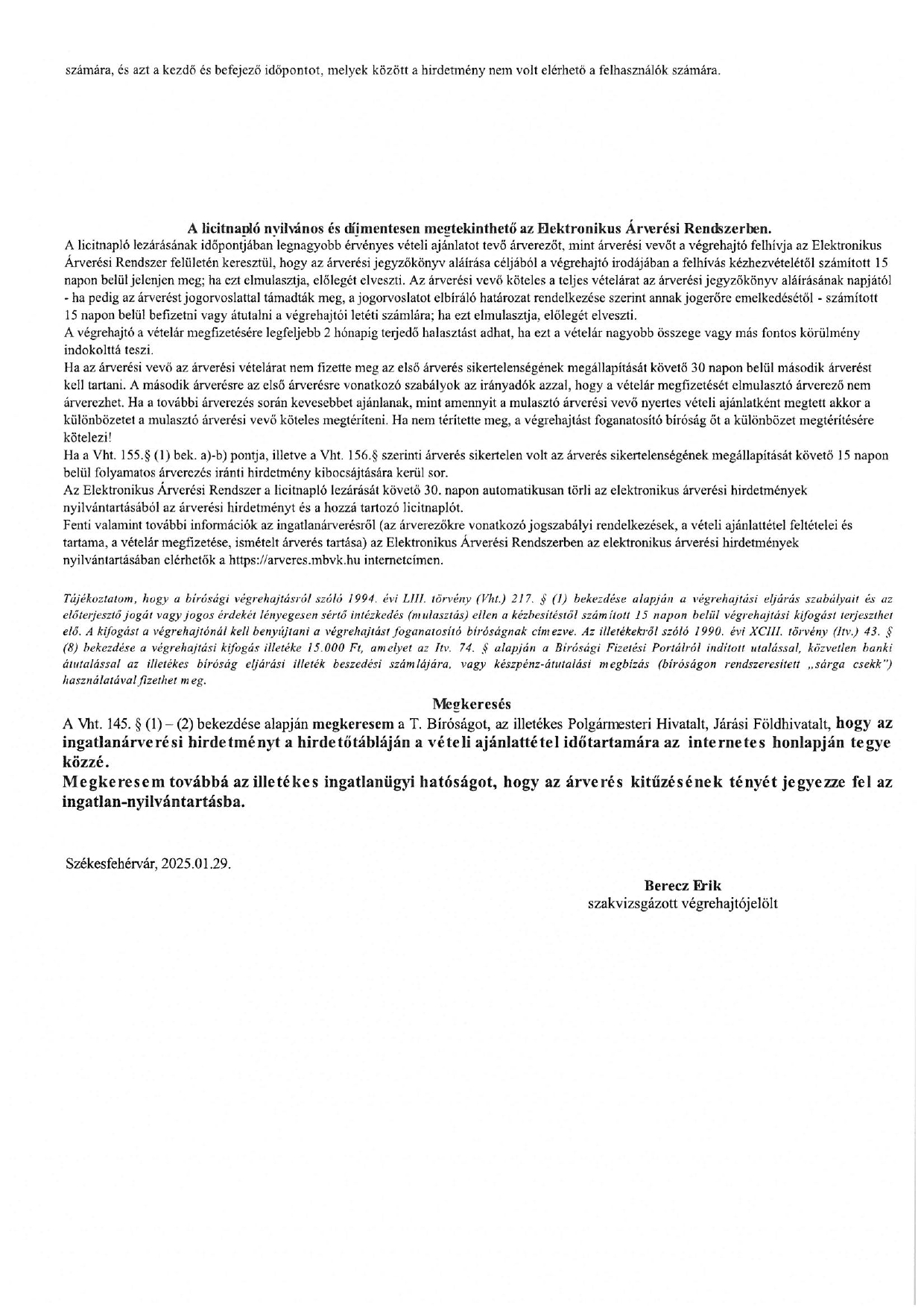 Dr. Harai Zoltán Csaba Végrehajtói Irodájának 129.AV.0025/2017/150 ügyszámú megkeresése alapján ingatlan áérverési hirdetmény közzététele ide kattintva érhető el.