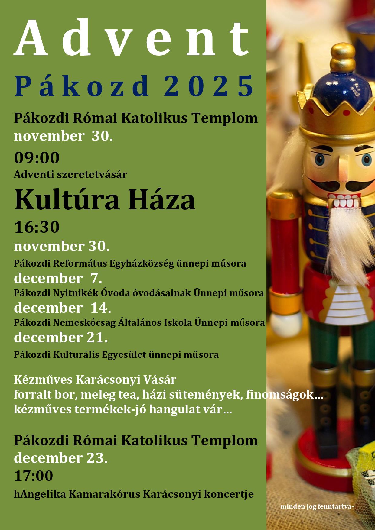 Tájékoztatom Önöket, hogy Pákozd Nagyközség Önkormányzata Képviselő-testülete a Magyarország helyi önkormányzatairól szóló 2011. évi CLXXXIX. törvény 54.§-a, valamint Pákozd Nagyközség Önkormányzat Képviselő-testületének szervezeti és működési szabályzatáról szóló 9/2025 (VIII.5.) önkormányzati rendelet 17.§ (1) bekezdése alapján 2025. december 8. napján (hétfő) 16:00 órai kezdettel közmeghallgatást tart, melyre ezúton tisztelettel meghívom.