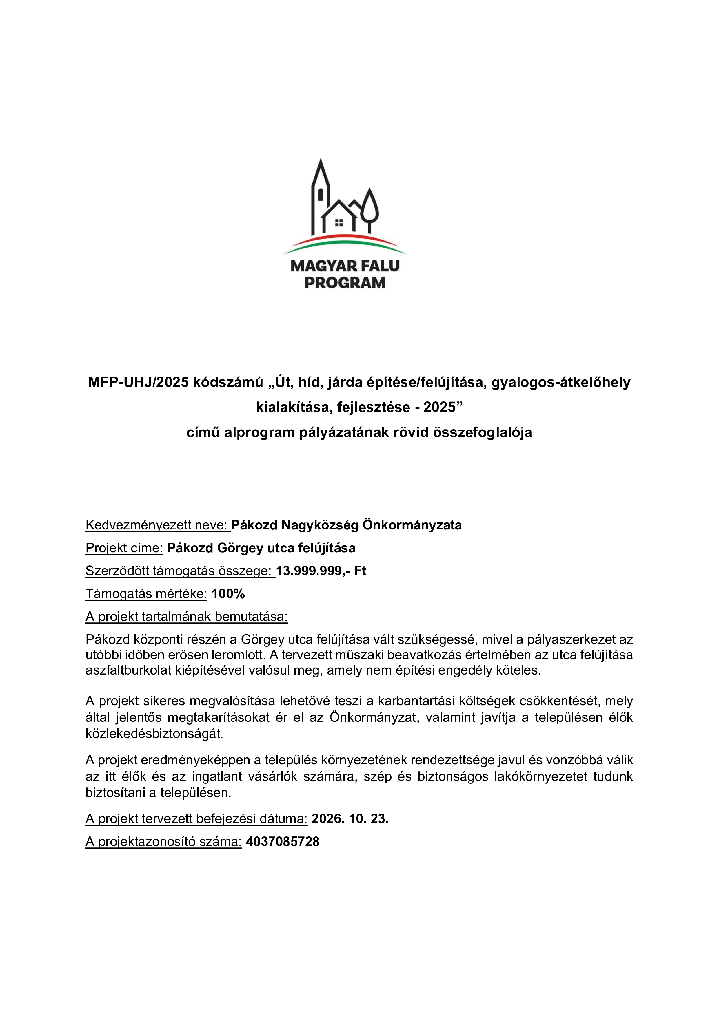 Kérjük a tájékoztatás szíves tudomásulvételét!