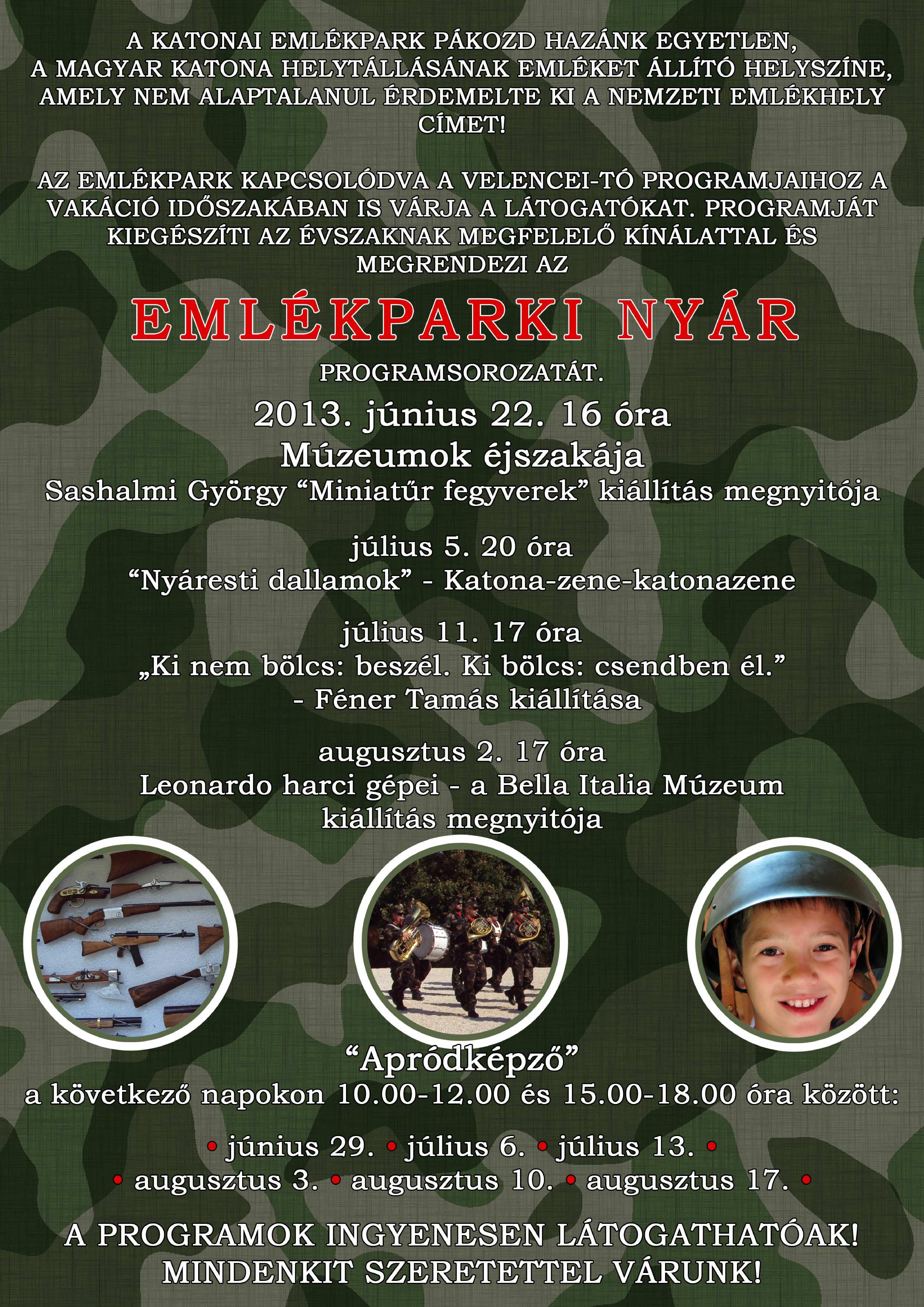 Az Emlékpark kapcsolódva a Velencei-tó programjaihoz a vakáció időszakában is várja a látogatókat, programját kiegészíti az évszaknak megfelelő kínálattal és megrendezi az